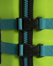 Зеленый цвет жилета делает его легко заметным на воде, что повышает безопасность ребенка.